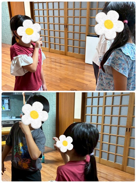ルールは、まず始めにチームでわかれて1列に並びます。スタッフが先頭の人にお題を出して、お題を聞いた人が、後ろにいる人に声を出さずにジェスチャーのみで伝えます。ジェスチャーを見た子は次の人へジェスチャーで伝えるというのを最後尾に行くまで繰り返していきます。最後の人がお題と同じ答えを言うことができたら、チームにポイントが入ります。