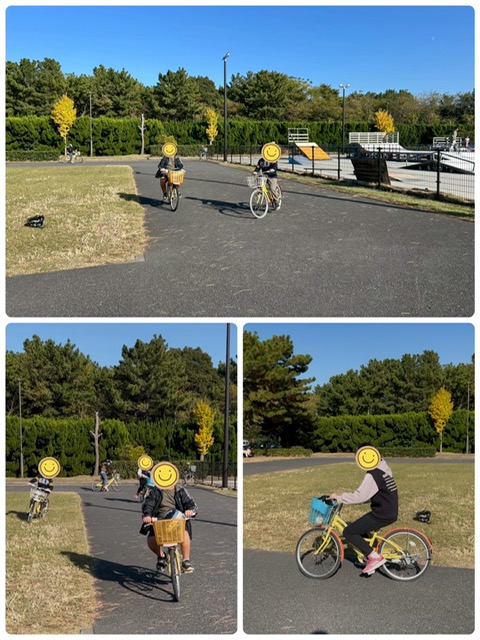 始めは自転車に乗るのが不安定だった、AちゃんやT君もだんだんと慣れてきて、スイスイこげるようになりました😄