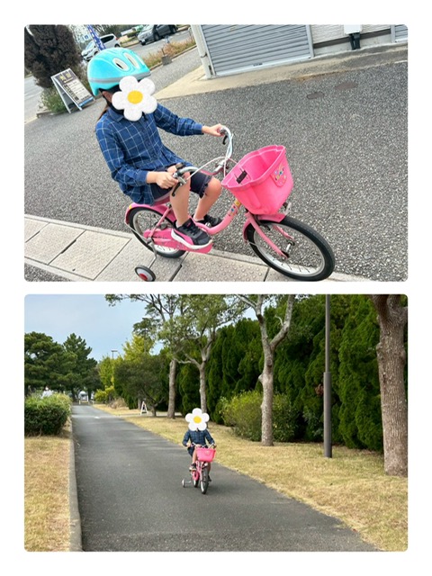 最初はバランスが取れずに自転車を倒してしまうこともありましたが、まっすぐ前を見て地面をしっかり蹴る練習で上手にバランスを取ることが出来るようになりました👏