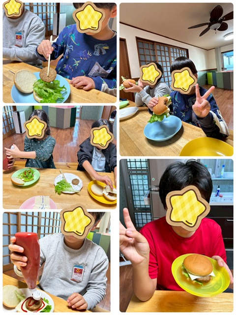 「ハンバーガー作りたい!」とリクエストしたHちゃん。張り切って作っていました!