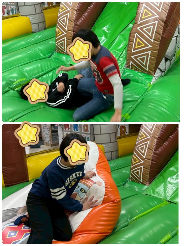 課題が終わると、トランポリンで鬼ごっこやかくれんぼをして楽しんでいました✨