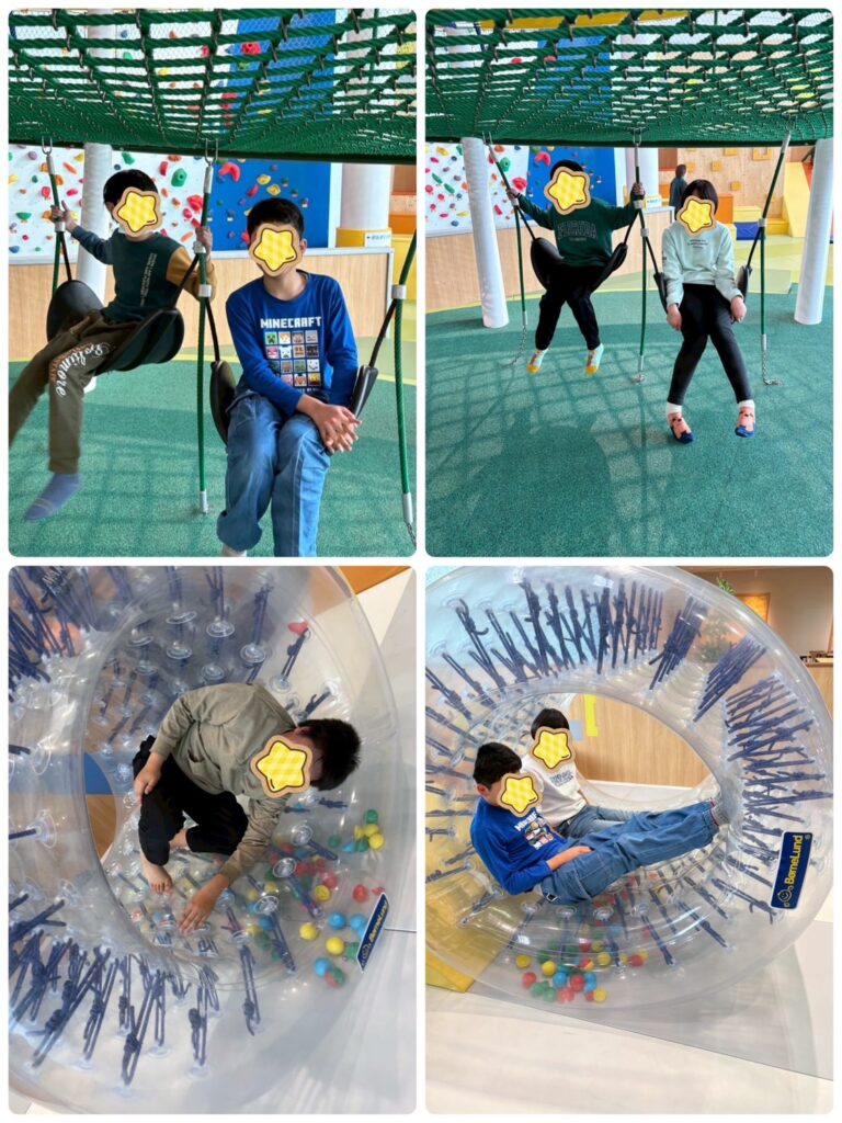 室内ではアスレチックに挑戦して、アクロバティックな動きをみんなで研究していました❤️